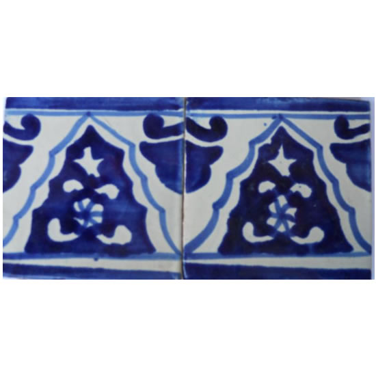 Cenefa en Azulejo de talavera color azul con blanco,Ideal para decoración de baños, albercas, cocinas y fuentes.