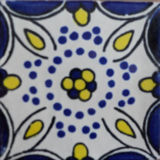 Azulejo de talavera 10×10 color amarillo, azul y blanco.