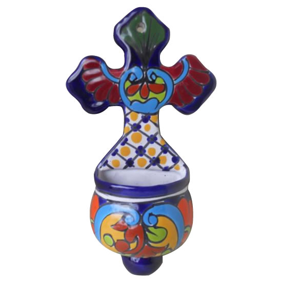 Maceta en forma de cruz de Talavera, pintada a mano.