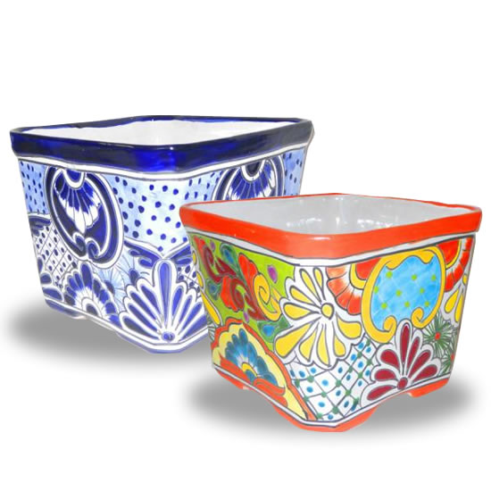 Bonitas Macetas de Talavera cuadradas en diferentes colores y tamaños