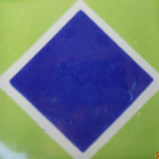 Azulejo de talavera 10×10 formando rombo al centro colores: blanco, azul y verde limon.