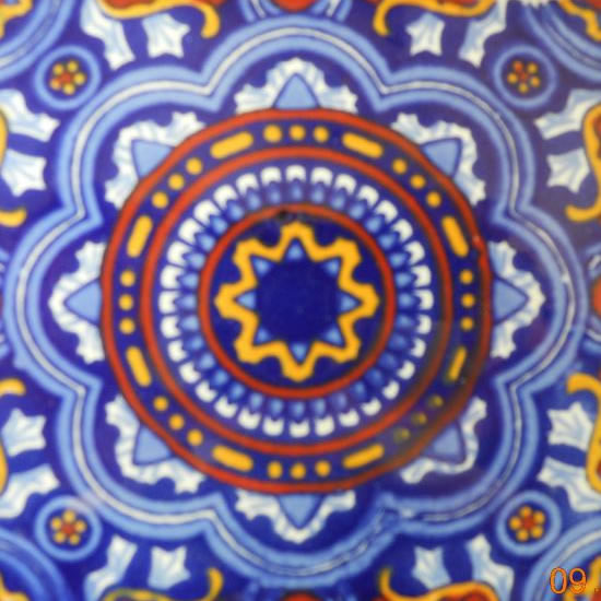 Azulejo de talavera 10×10 estilo colonial con colores: blanco, amarillo, terracota, azul.